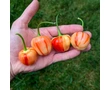 De planten groeien middelgroot en dragen rijkelijk vruchten die van lichtgroen naar zacht perzikoranje kleuren naarmate ze rijpen. De smaak is fruitig en licht pittig – een aangename balans tussen frisheid en warmte. Perfect om gerechten een vleugje kleur én een milde kick te geven.